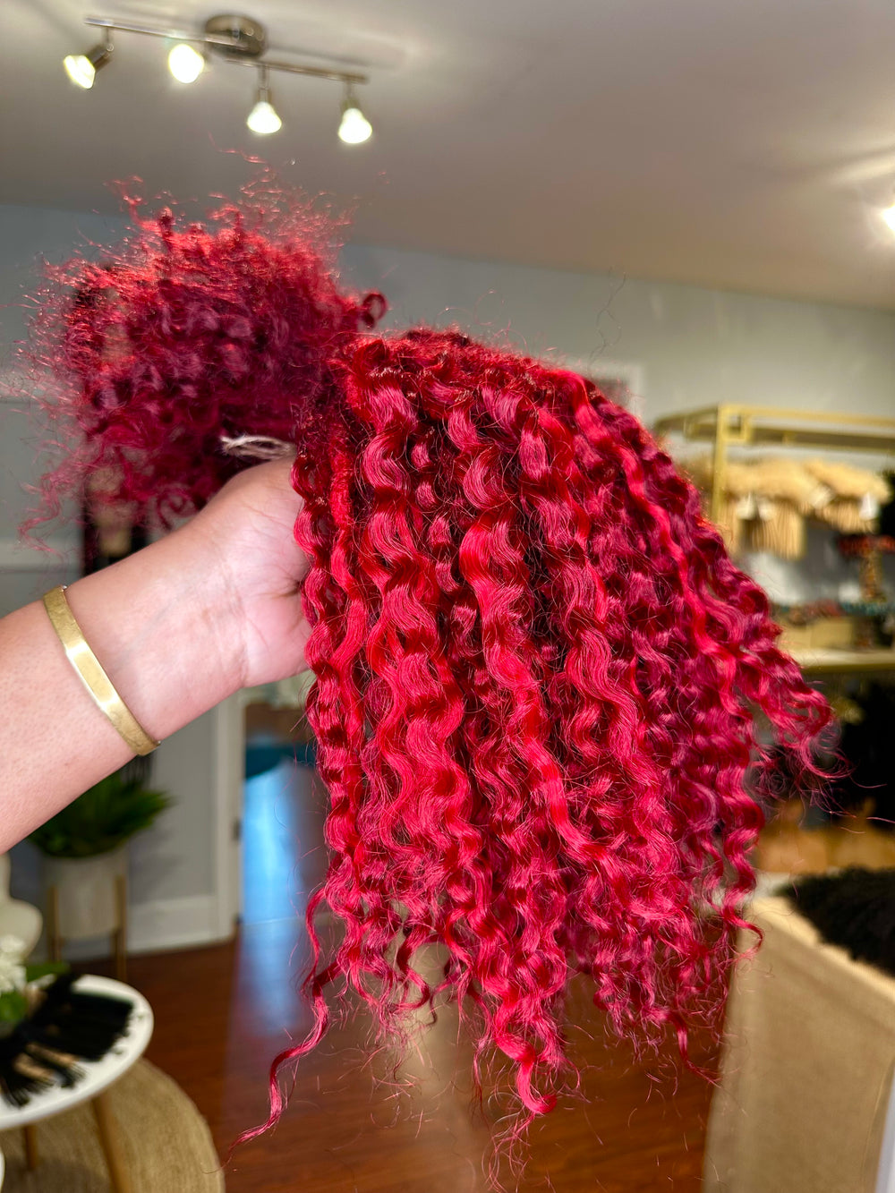 After installing loc extensions with coils or curly ends, DO NOT AGGRSSIVLY COMB TO DETANGLE. DO NOT AGGRSSIVLY PULL ON CURLS DURING DETANGLING. Aggressively detangling curls will only pull out stands of hair that has not been matured internally, which will eventually cause excessive shedding & thinning to the loose curls over time.