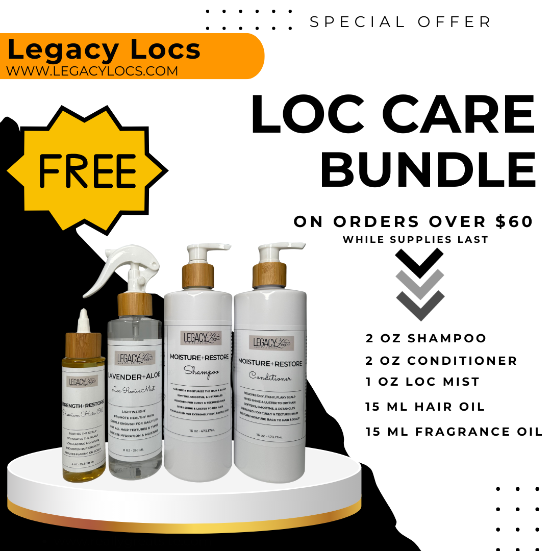 One free SAMPLE SIZE loc care bundle will automatically apply to cart for orders order $60. Only one loc care bundle per order.