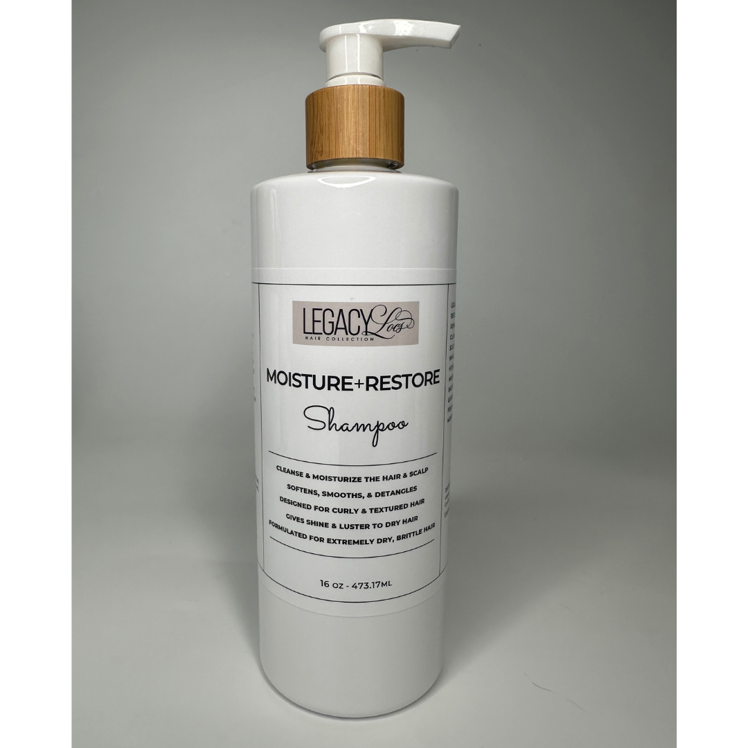 Legacy Locs Moisture + Restore shampoo was formulated to help soften & relax loc extension stiffness, while providing beneficial nutrients to natural hair and scalp promoting healthy hair growth. This shampoo will cleanse hair and scalp of impurities while strengthen, hydrate, and restoring moisture balance back into your hair leaving each strand feeling stronger and more resilient.
